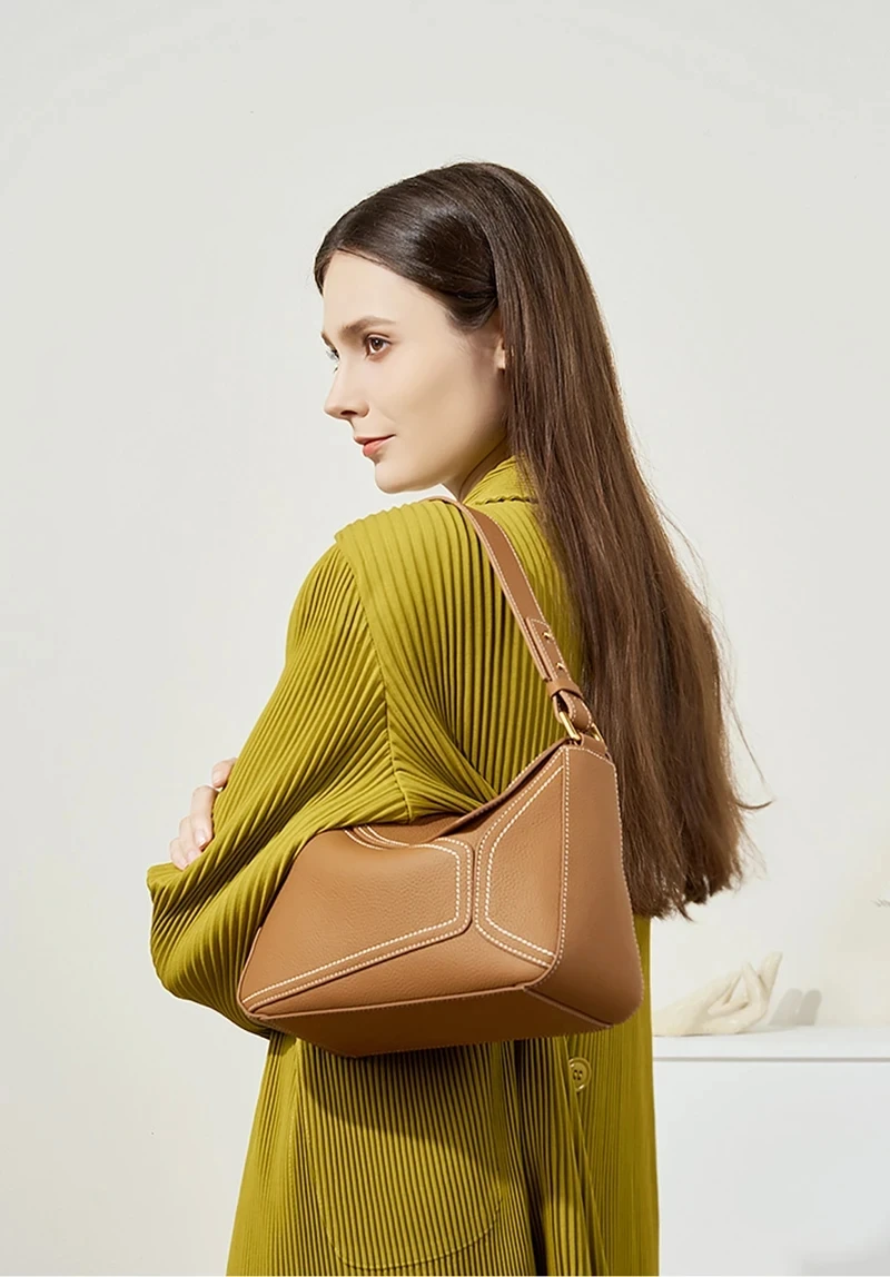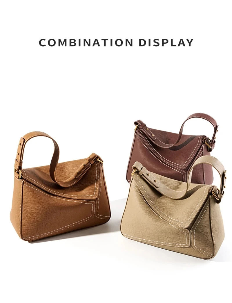 Modieuze damestas Echt leer Geometrie Ontwerp Luxe schoudertassen Koeienhuid Dames Flap Crossbody Tas Vrouwelijke handtassen